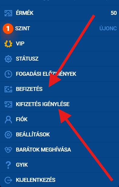 - Kattintson a „Befizetés” vagy „Kifizetés” opcióra.
